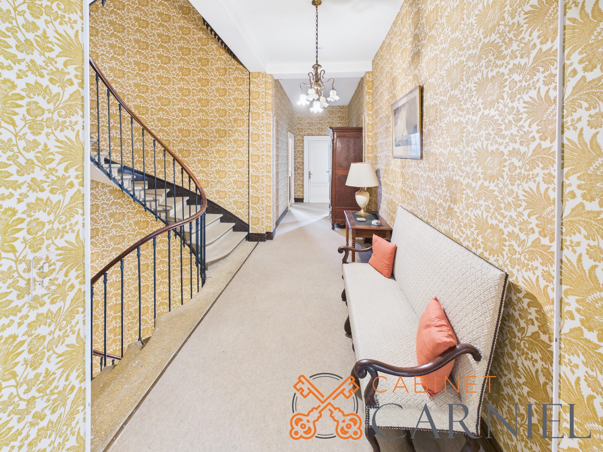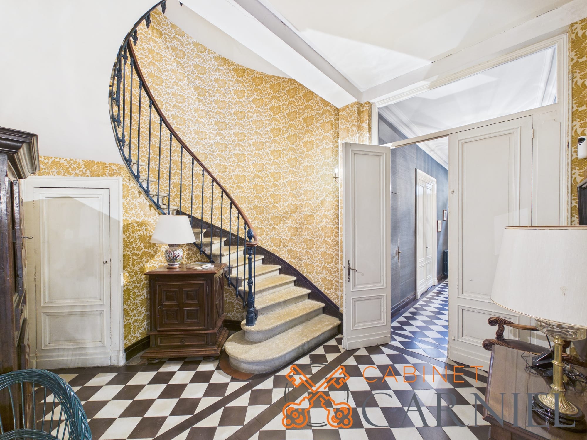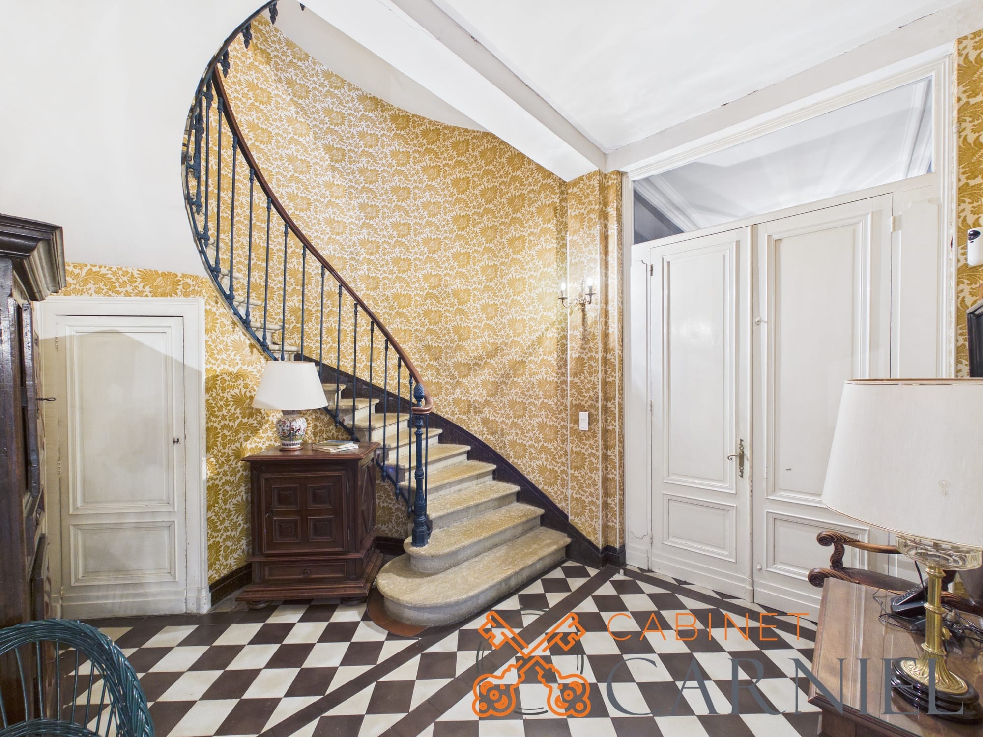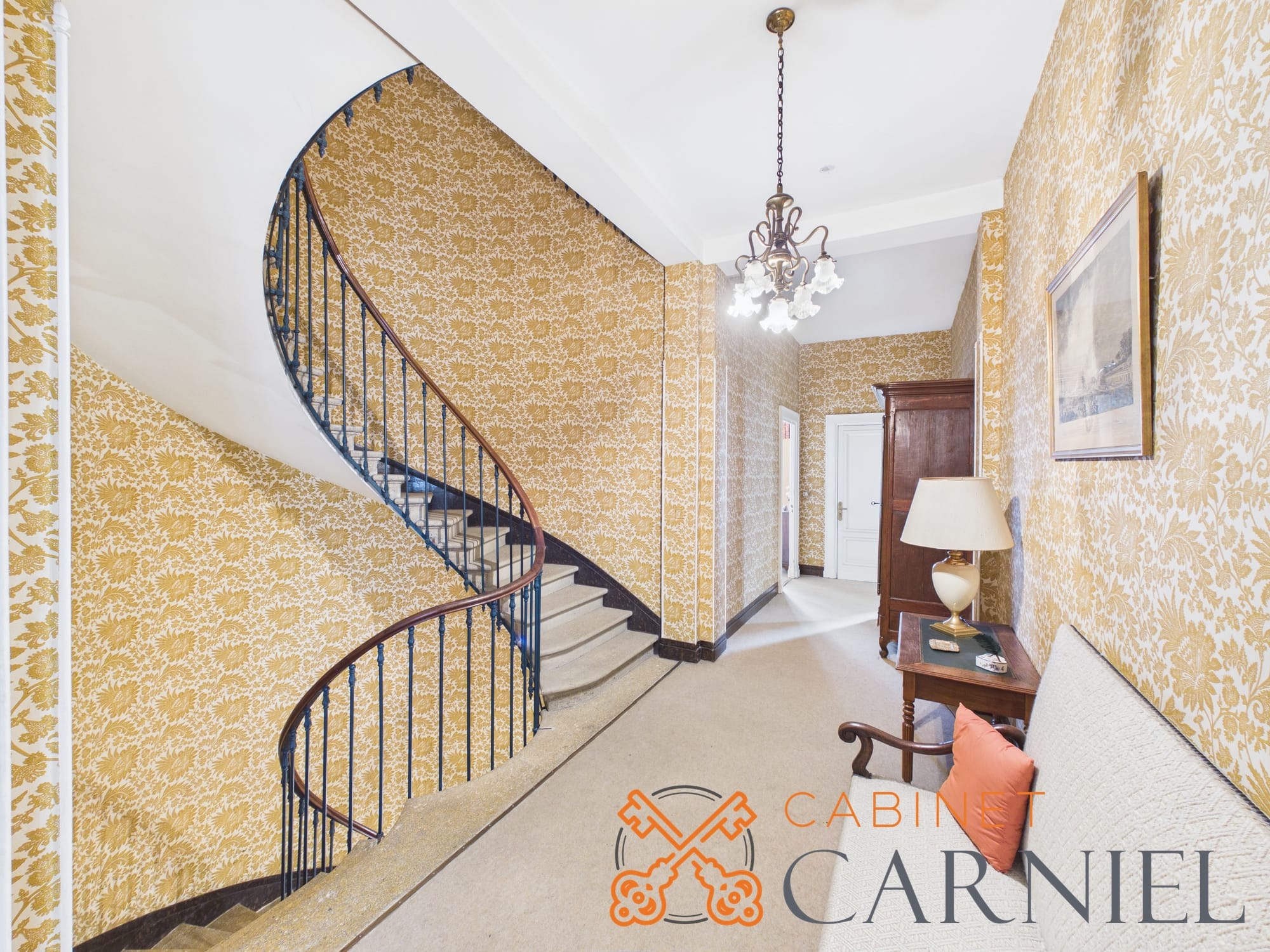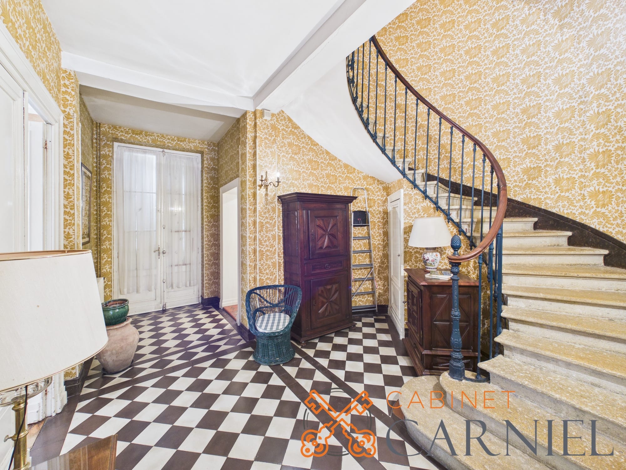 Un escalier ancien en pierre, au cachet remarquable, dessert les étages et constitue l’un des éléments signatures de la maison, alliant élégance et authenticité.