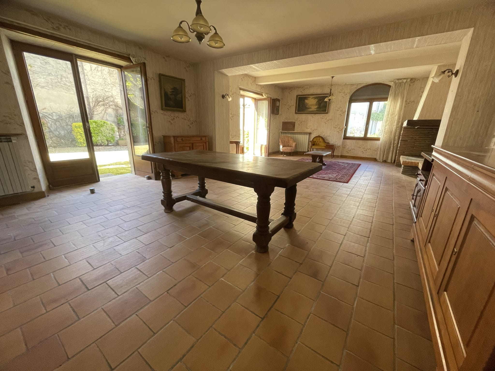 En rez-de chaussée, superbe espace de vie d’environ 50 m2 comprenant salon / salle à manger avec belle cheminée d’angle