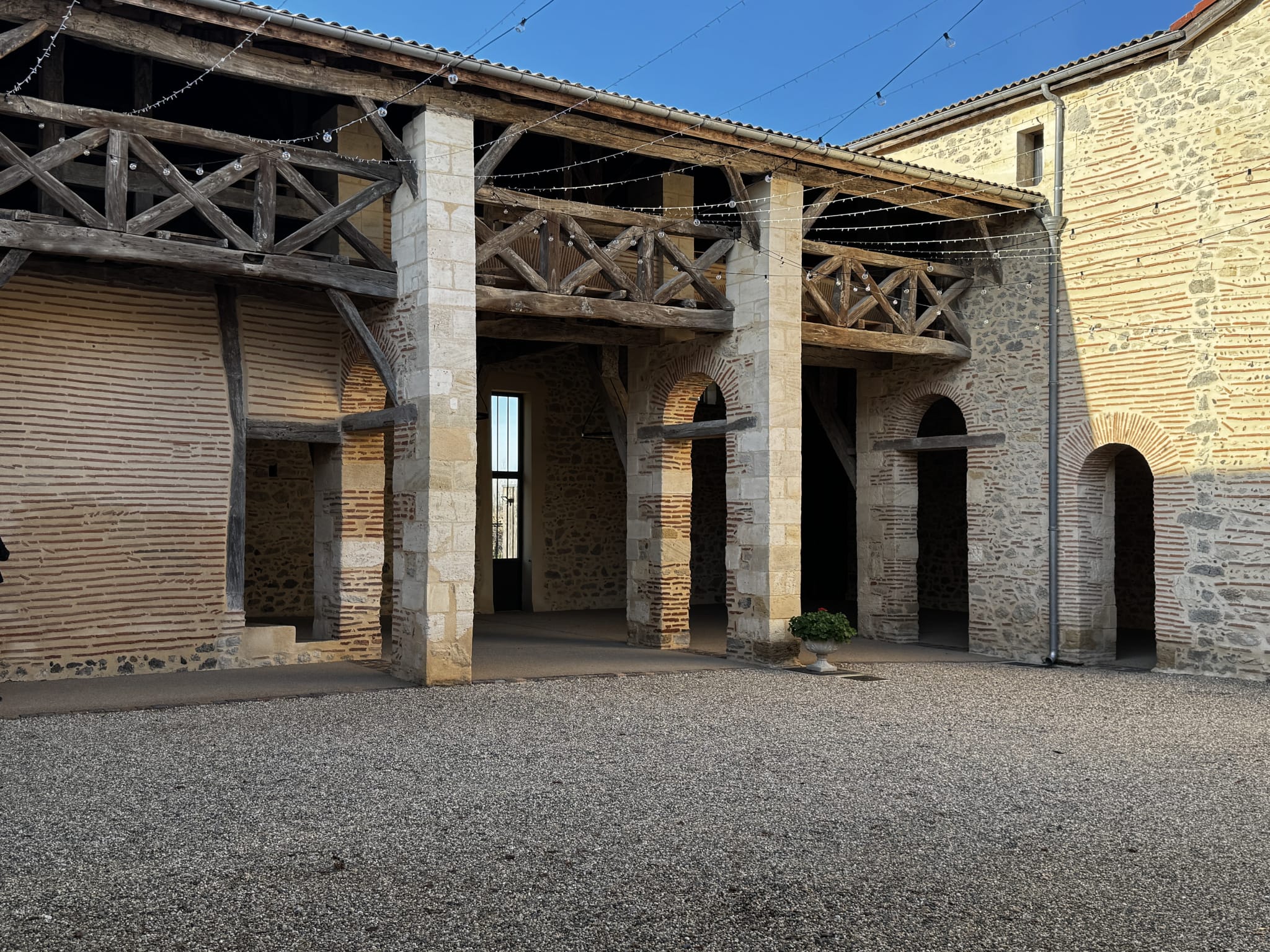 Ce château à péage médiéval, progressivement transformé au fil des siècles, s’organise autour de cours successives et de volumes généreux. Pierres blanches, briques anciennes, poutres apparentes et vastes ouvertures créent une atmosphère d’authenticité rare.